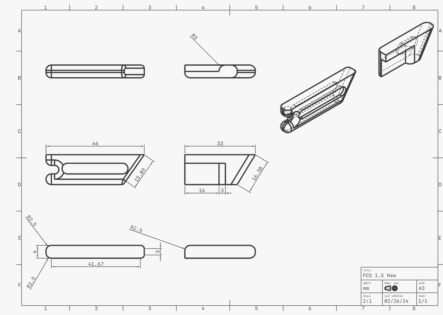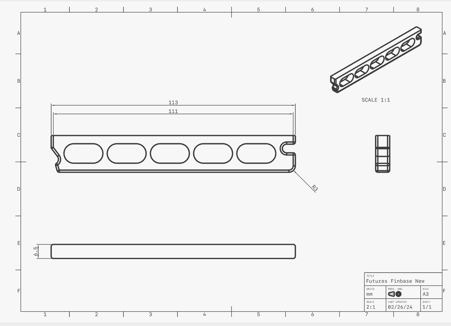 Various photos from the design projects I completed during my internship. Including FCS 1.5 Fin base redesign, Futures Fin base redesign with engineering drawings, and Cubicle Trailer Fin Design Concept.